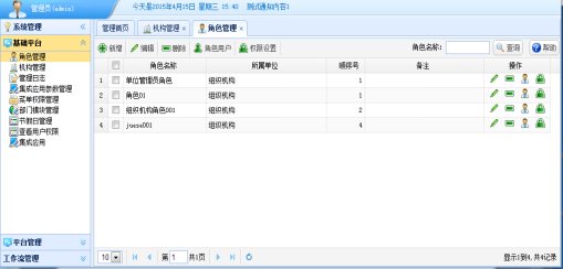 部门级管理员可以管理自己部门级的角色,并对自己的角色进行权限设置。