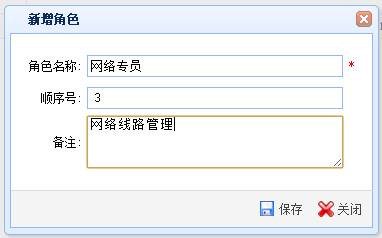 点击“新增”按钮,弹出“新增角色”窗口,输入角色信息,点击“保存”按钮进行保存。