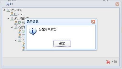 选择多个角色,点击角色列表点击“角色用户”按钮,系统显示“用户”树形页面。
