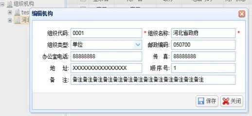 选择一个机构,点击上方“编辑”按钮,弹出“编辑机构”窗口,编辑机构信息,点击“保存”按钮进行保存。