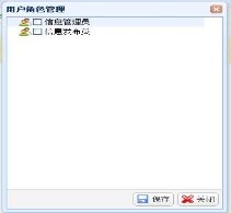 选择一个用户,点击用户列表工具栏“用户角色”按钮,系统弹出“用户角色管理”窗口。