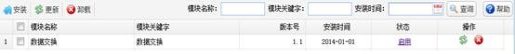 选择一个模块,“状态”列显示当前模块的状态,点击当前状态,变更模块状态。如果为停用则变更为启用,如果为启用则变更为停用。