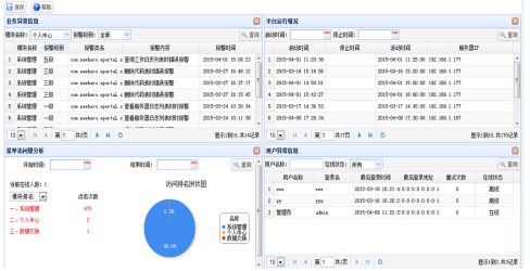 用户登录后系统主界面默认是四个业务信息窗口,管理员可以配置默认的窗口数量和窗口显示内容,用户也可以通过拖动、关闭、个人参数配置来实现不同的显示效果和内容。