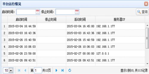 平台运行情况记录平台应用服务器的启动和停止情况。