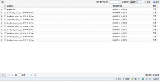 服务器日志是管理员使用的功能,服务器日志分为服务器日志记录和log4j记录两种记录,此功能提供日志详细信息的查看和下载功能。log4j记录和服务器日志记录的路径通过“系统参数管理”进行设置。