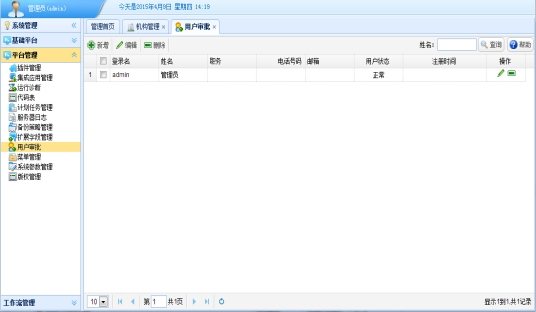 “用户审批”功能是新增、编辑、删除、机构用户和审批注册的机构用户。
