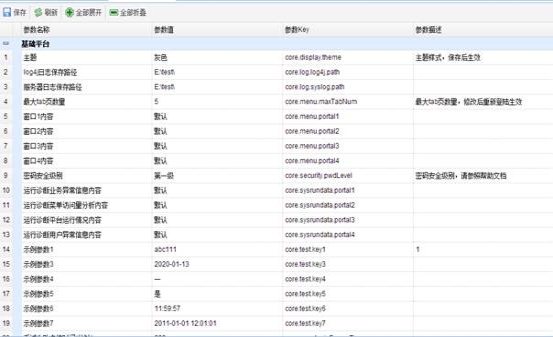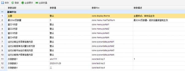 系统参数可以配置系统皮肤样式、系统管理首页内容等各个业务功能的各类参数,统一管理各业务模块的系统级配置。系统参数为系统默认配置 。