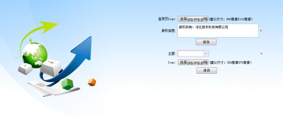“版权管理”功能可以变更登录页的logo图标、版权信息和系统主页上方的logo图标,选择不同的主题,上传不同的logo图标。
