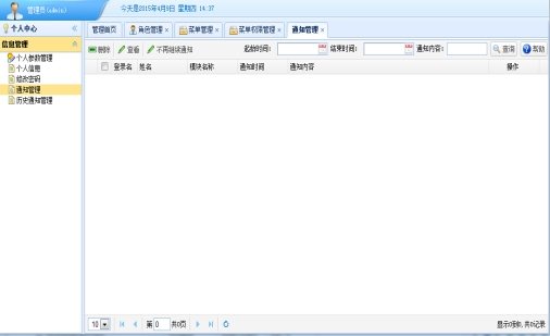 选择一条或多条通知,点击“不再继续通知”按钮,所选通知信息成为历史通知,系统首页上不再进行提醒。