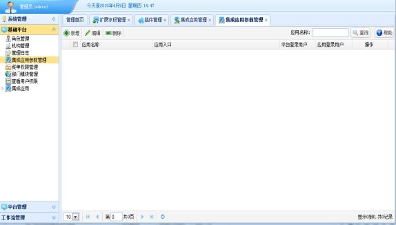 “集成应用管理”功能定义第三方WEB应用的入口地址、应用名称等基本信息。